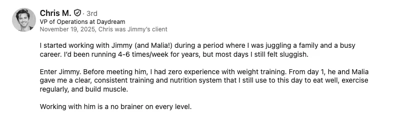 Results may vary. All testimonials are from real clients, but they represent the experiences of highly motivated individuals who followed the program with full commitment. Your results will depend on factors such as adherence, effort, consistency, and personal circumstances. Results are not guaranteed.